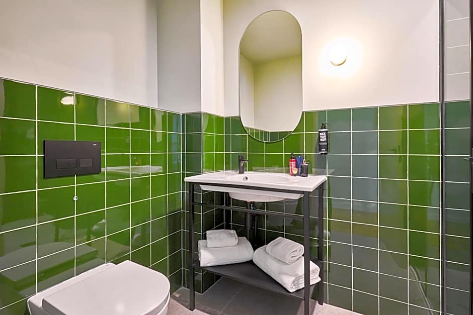 The double room offers air conditioning, soundproof walls, as well as a private bathroom featuring a shower and a hairdryer. The double room provides a flat-screen TV, a wardrobe, parquet floors, heating as well as city views. The unit offers 1 bed.